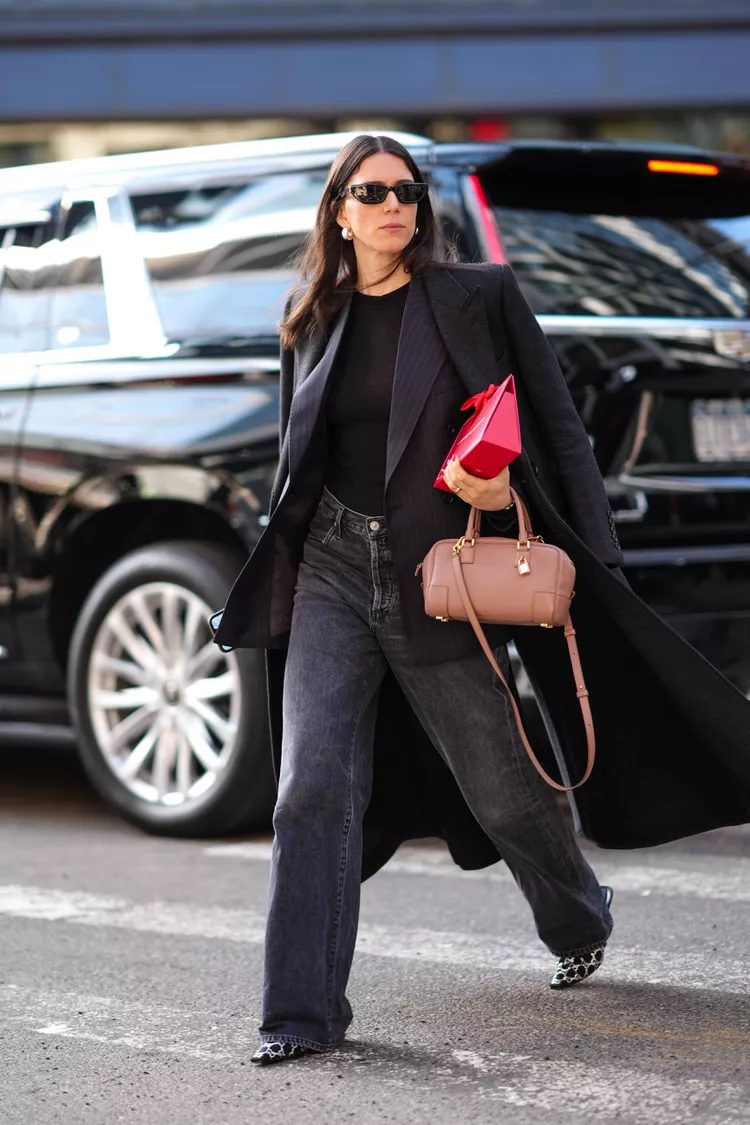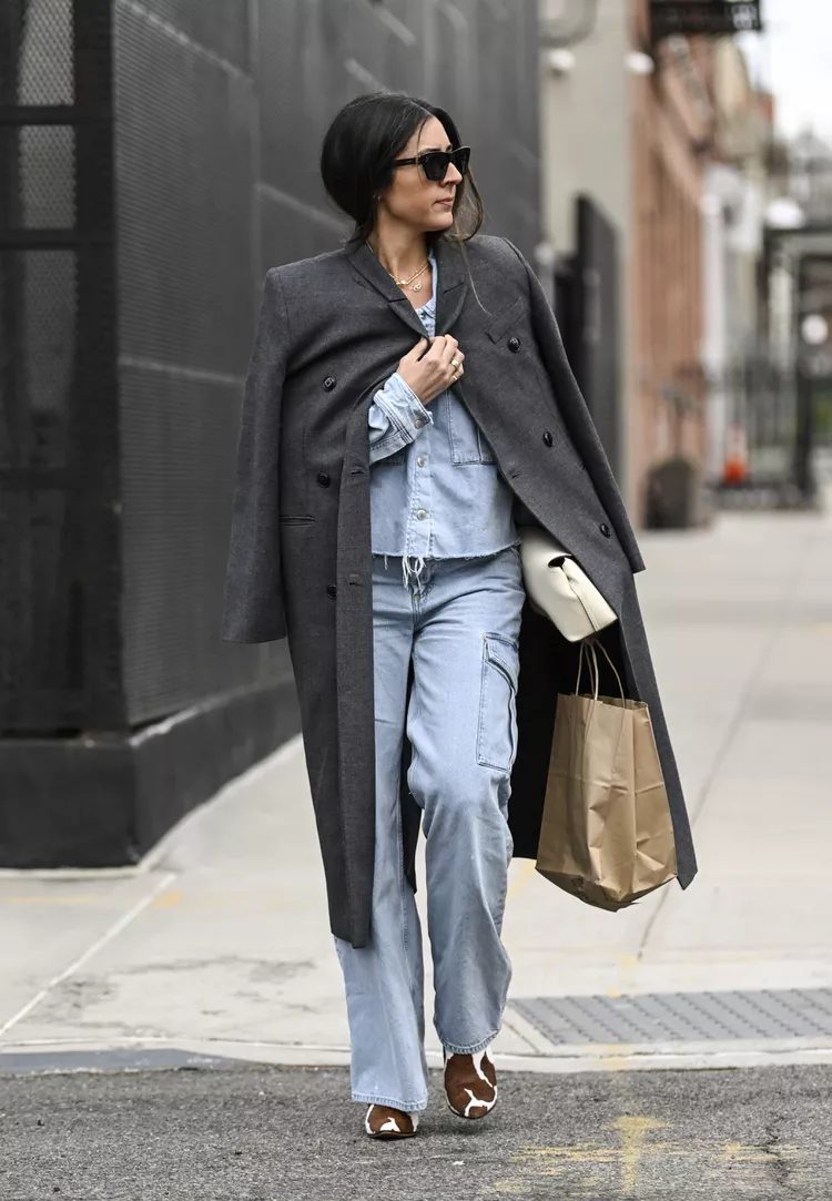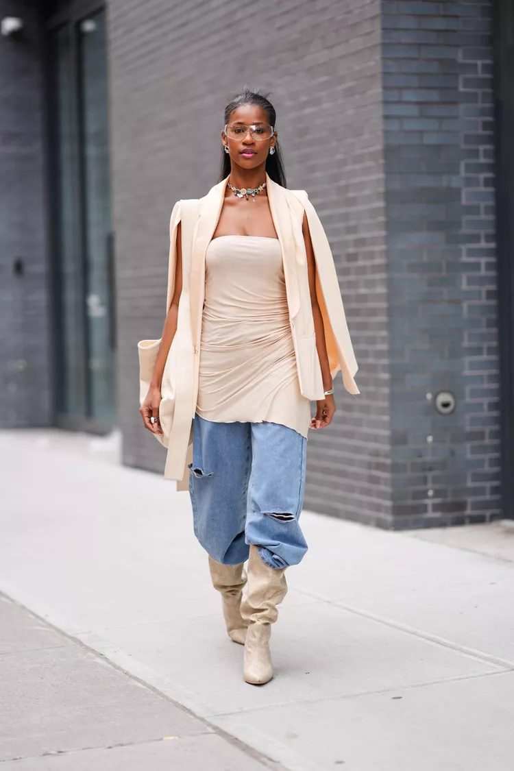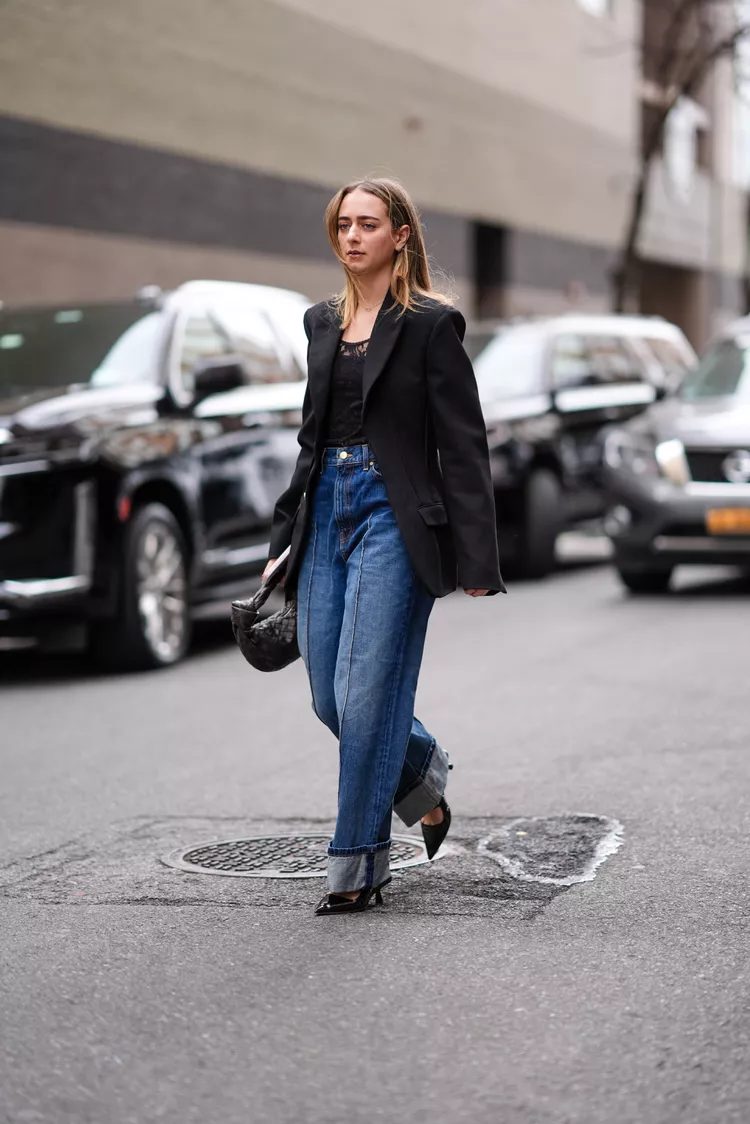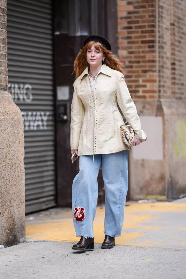 It turns out that there are many options. The street style of 2024 shows that baggy jeans are versatile and can be worn in many different ways. They also come in various denim washes. Boots with narrow toes or block heels in the ’90s style will boost any look. Ballet flats, like the Chanel version, are also a fun addition. Clever styling techniques like cuffing and tucking your hems will further highlight your footwear.