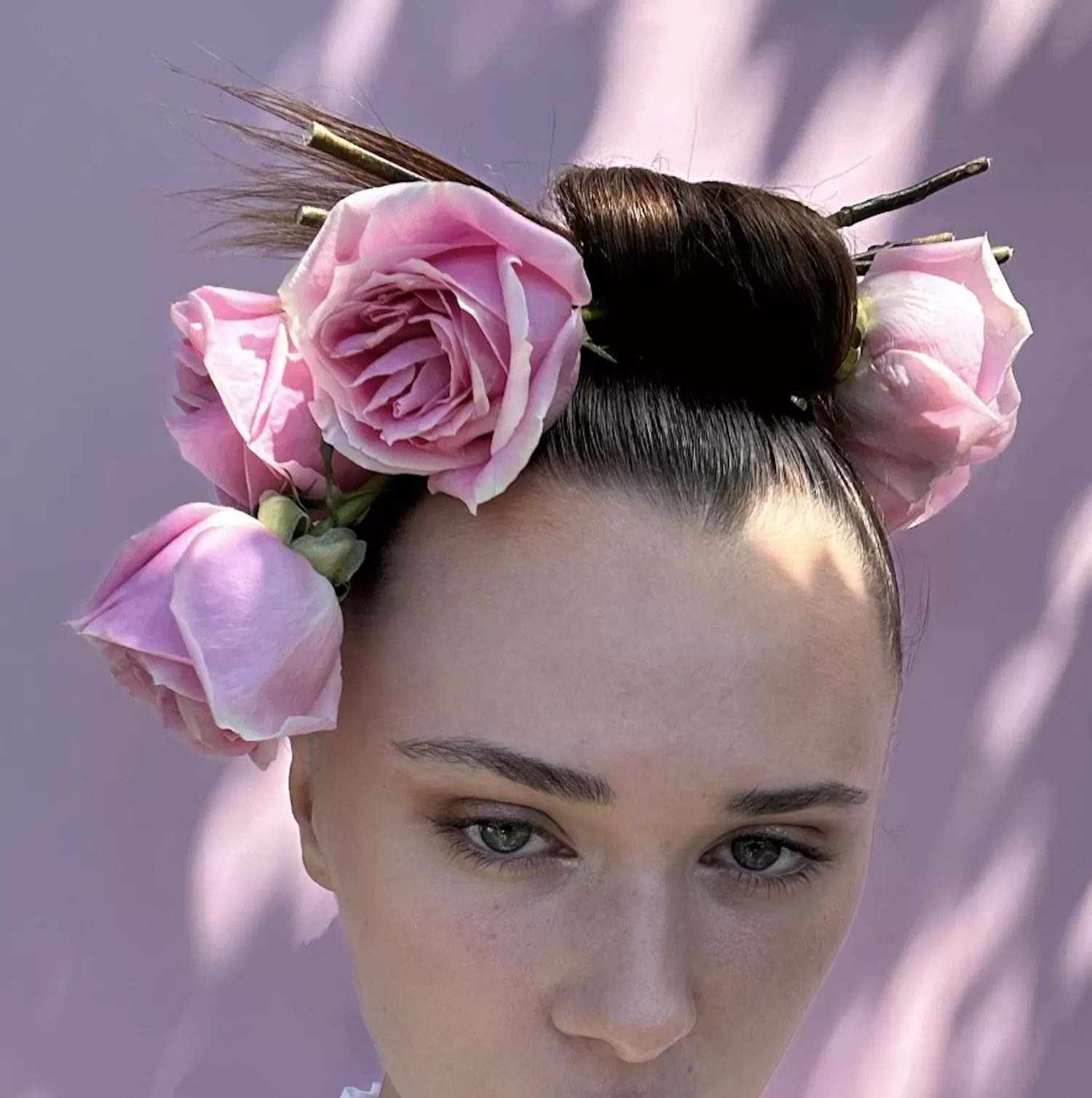 The trick of adding flowers to hair has been around for centuries, but it still feels fresh. This look is inspired by Dior’s fall 2007 campaign and takes a sleek, updo to a whole new level.