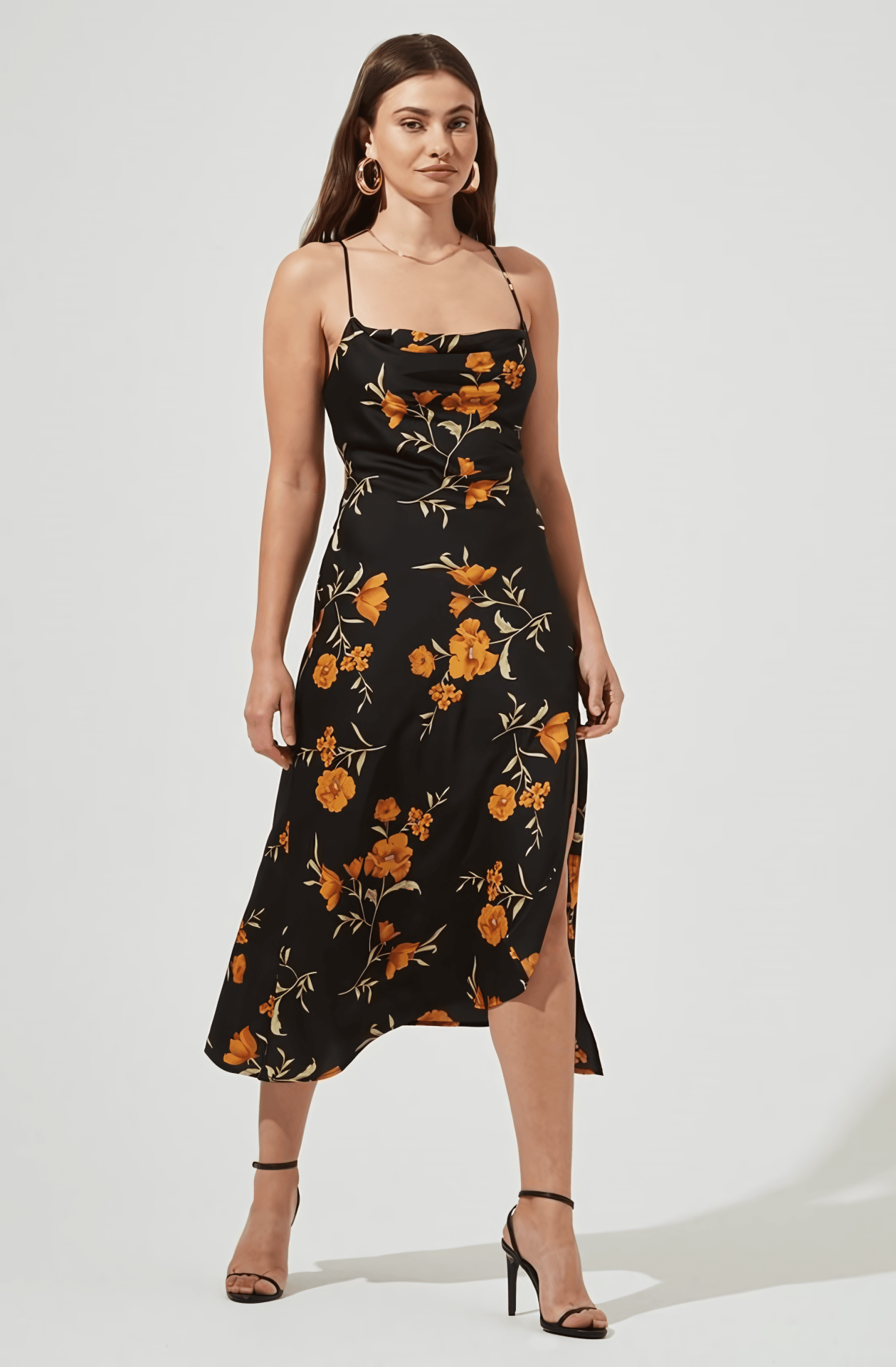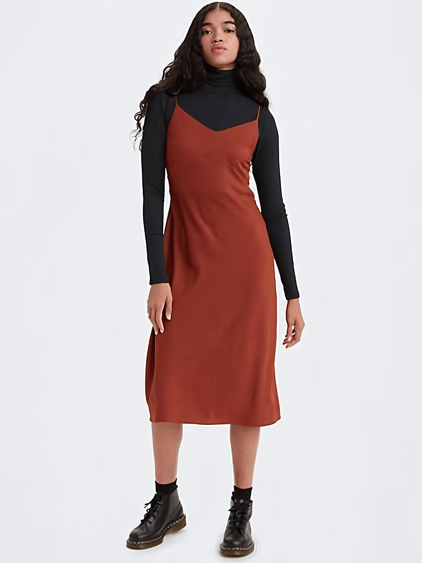 A midi dress, on the other hand, is a shorter version of the Slip dress that falls around the mid-calf.