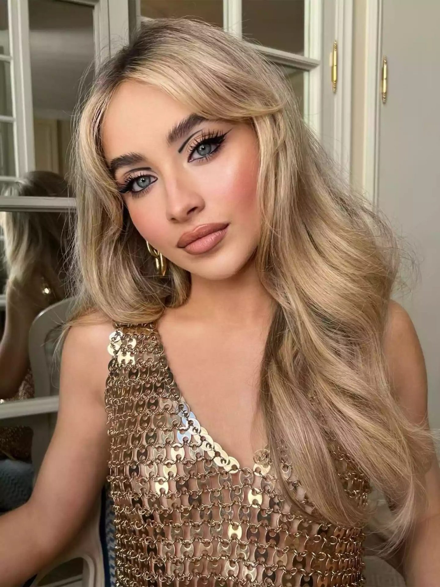 Twiggy is definitely a big influence on Sabrina Carpenter. Line the eyelids around the top, bottom and crease.