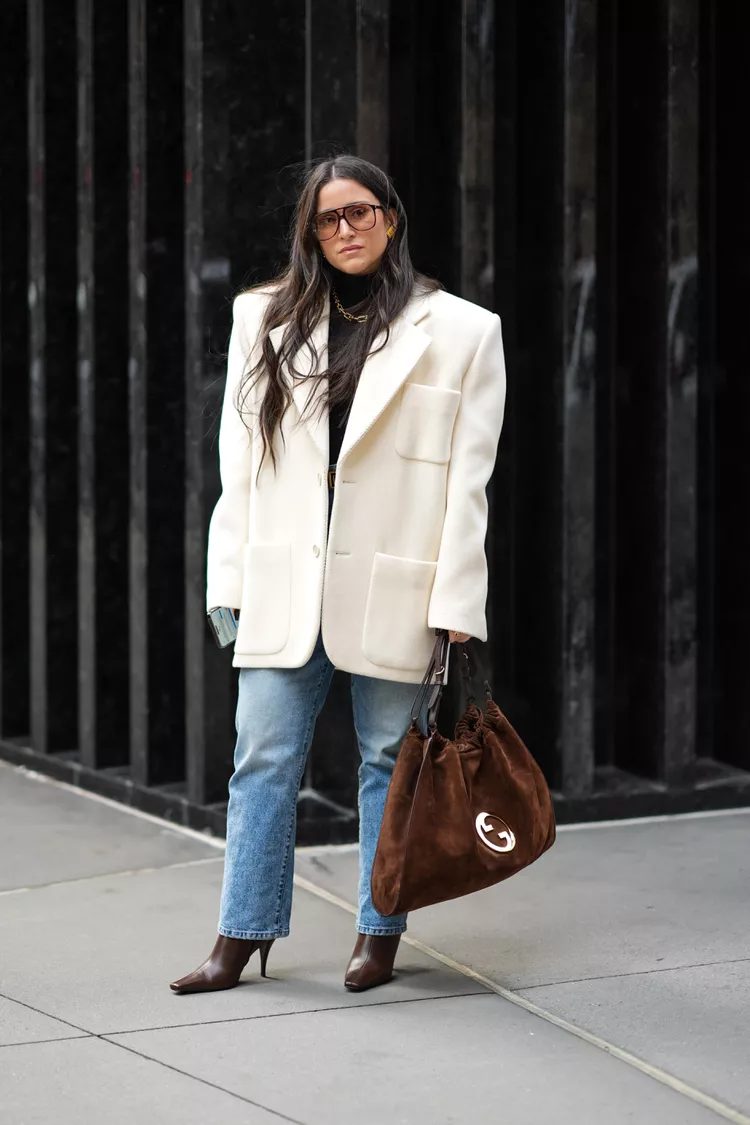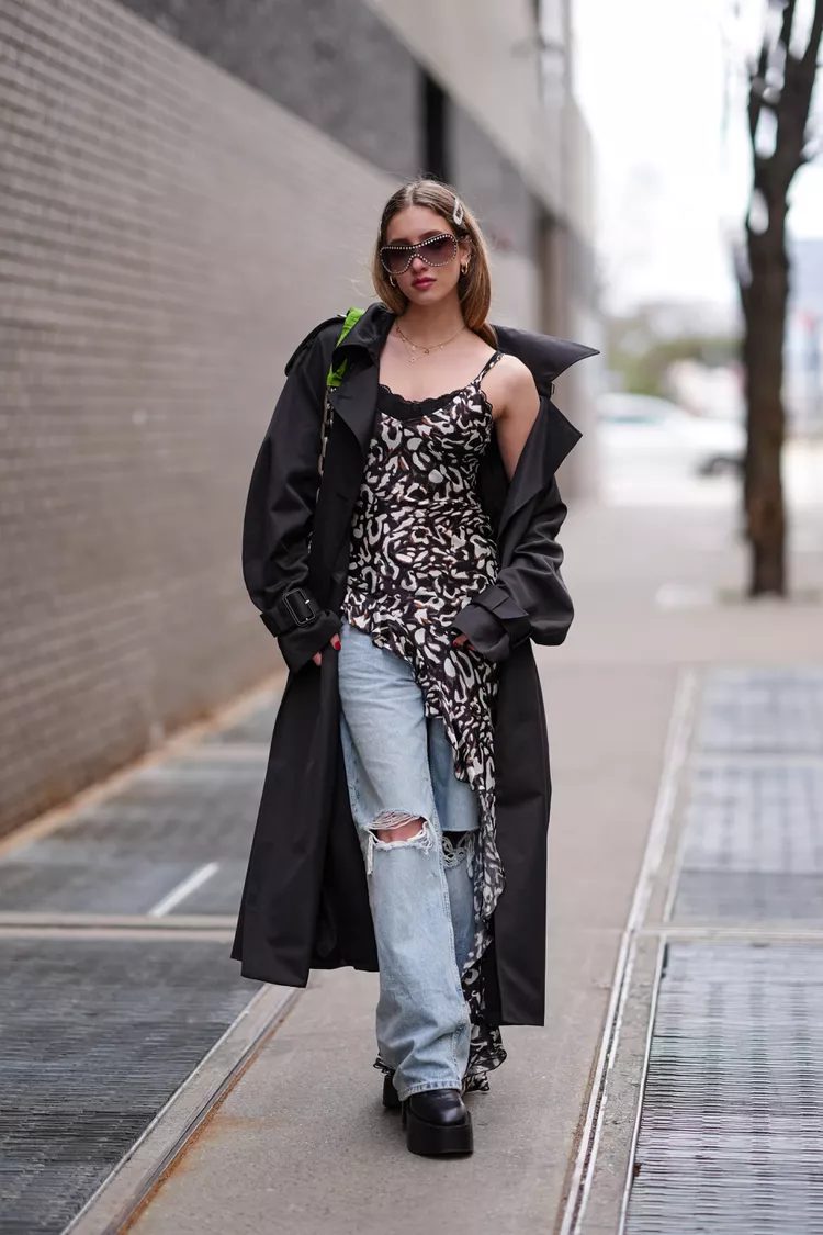 Skinny jeans have returned and are not going anywhere anytime soon. This is due to the rise of “indie sleaze”, and the nods made to the 2010 dressing trends seen on many runways. The leg-hugging look can be streamlined with a stiletto boot in a neutral color. This will elongate the leg and keep it sleek day or night.