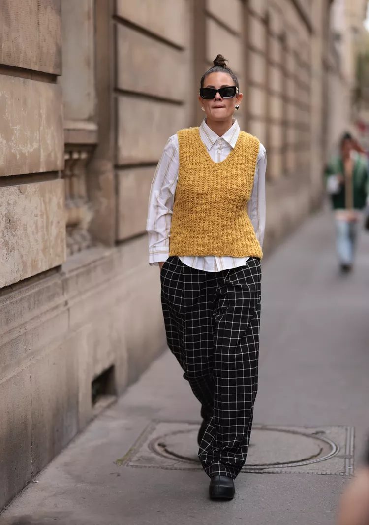 Gigi Hadid’s look is a tribute to the ’90s. She paired her vintage leather jacket and tight sweater vest with chunky sneakers, customized denim and a tailored shirt for a streetwear-inspired look. This style shows that you can mix and match textures and colors without overwhelming your outfit. It gives you the edge you need to embrace the latest trends while feeling casual enough for your daily errands.