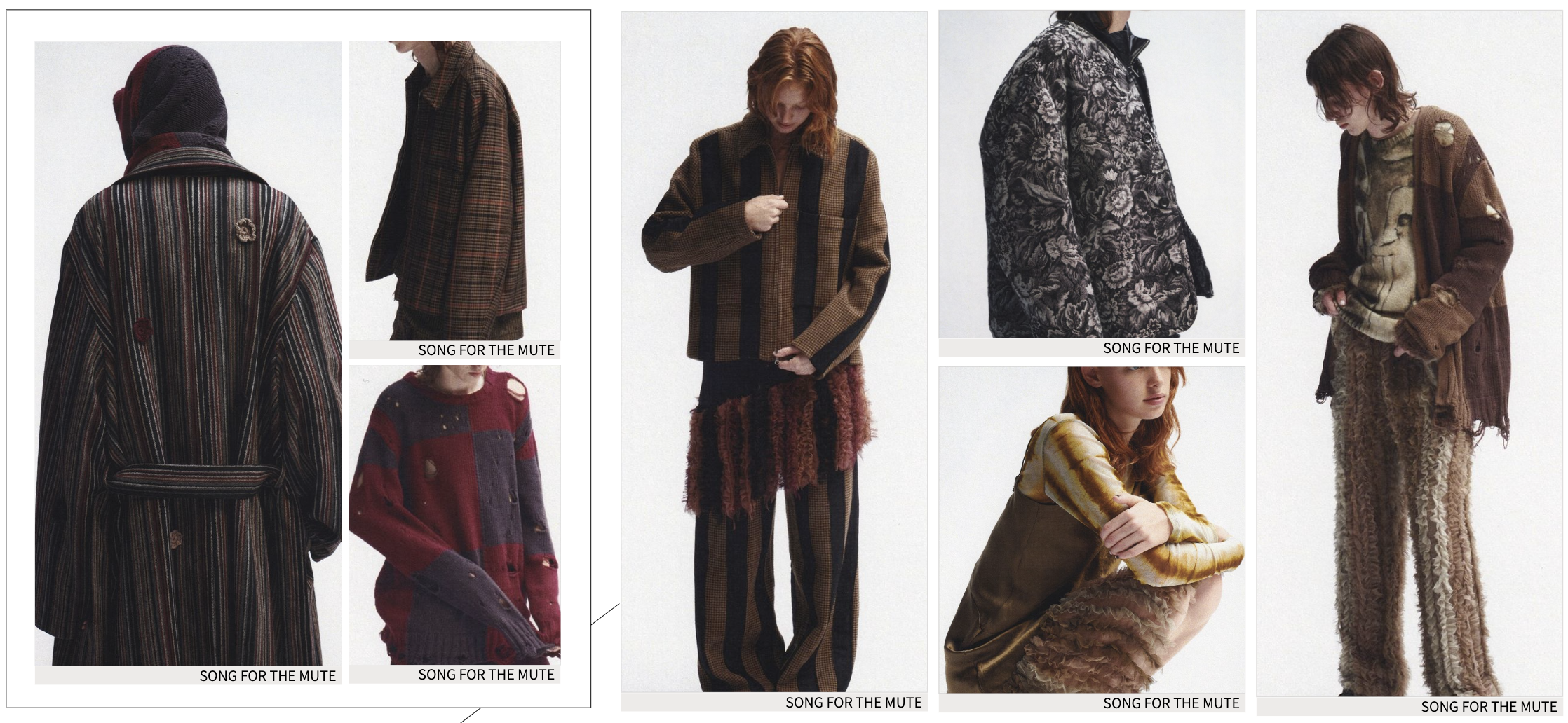 Continuing the narrative of emotional depth, Song for the Mute presents its second Autumn/Winter 2024 collection titled ‘TearDrop.’ Building upon the success of the ‘Desert Rose’ series, this iteration delves deeper into the realm of dark, desert hues, marrying rich, dark browns with intricate pleating and felt patchwork techniques. The result is a collection that encapsulates the essence of melancholic beauty, where the juxtaposition of decay and romance creates a captivating visual narrative that resonates deeply with the contemporary psyche.