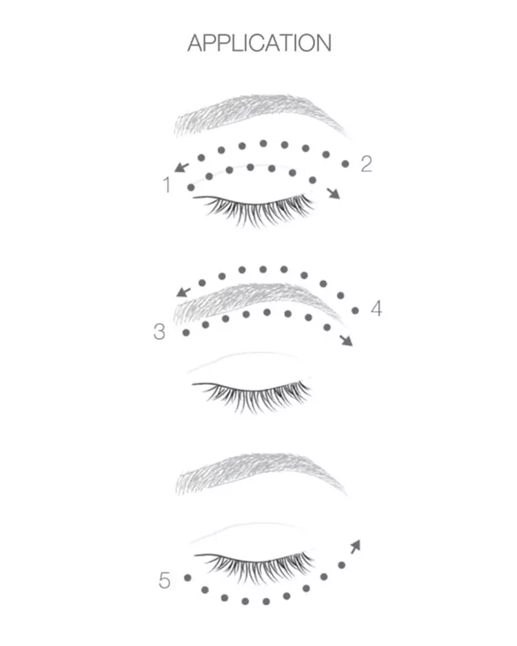 If not otherwise stated, eye serums should be applied to clean skin morning and night. The skin around the eyes is very delicate. Use your ring finger as a gentle tool to blend and tap your eye serum.